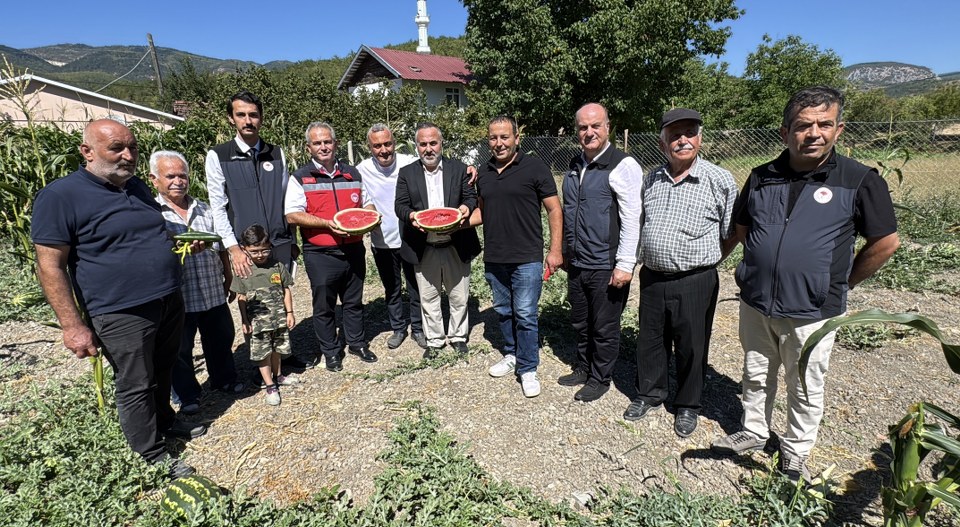 Katılımcılara çeşitli yörelerden getirilen fidelerden yetiştirilen karpuz ikram edildi.