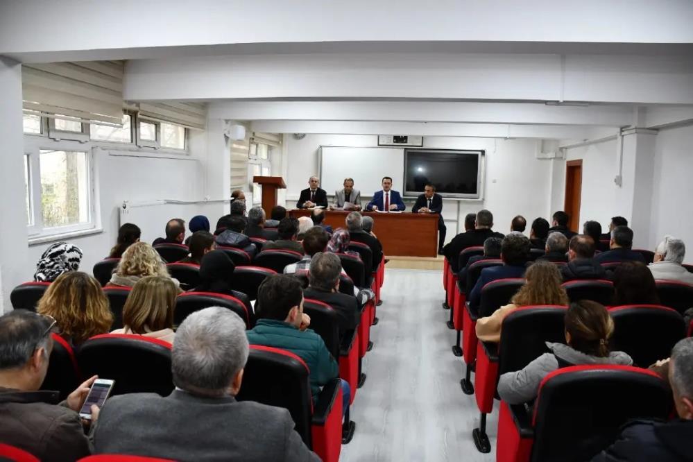 Milli Eğitim Müdürlüğünden yapılan açıklamada, “Okul terki ve öğrenci devamsızlıklarının önlenmesi ile ilgili alınacak önlemler, okul rehberlik hizmetleri ve özel eğitim hizmetleri, destekleme ve yetiştirme kursları, taşımalı eğitim ve servis araçları, taşımalı öğrencilerin öğle yemeği işlemleri, önemli gün ve hafta etkinlikleri ile milli bayramlar, okul ve öğrenci güvenliği, iş sağlığı ve güvenliği ile ilgili alınacak tedbirlerin, eğitim kurumlarımızın eğitim-öğretime hazırlıklarının görüşülmesi, madde bağımlılığı, internet bağımlılığı ve diğer zararlı alışkanlıkların önlenmesi ile ilgili alınabilecek tedbirlerin görüşülmesi, okulda gerçekleştirilen toplantıların, idari uygulamaların öğretmenler ve zümrelerce yeni zümre yönetmeliğine göre planlanması değerlendirilmesi, 2023-2024 eğitim öğretim yılında yürütülen ve yürütülecek projeler ile ilgili yapılabilecek çalışmaların görüşülmesi, okulların hizmetli durumları ve hizmetlilerin görevleri, müdür yardımcıları tarafından personel takiplerinin titizlikle yapılması hususunda işbirliği, okulda eğitim ortamlarının iyileştirilmesinde, fiziki yetersizliklerin giderilmesinde idari koordinasyon ve görev paylaşımı, okul sağlığı çalışmaları, resmi yazışmalar ve e-posta gönderiminde dikkat edilecek hususlar, ücretli öğretmenlerin SGK işlemleri ve karşılaşılacak cezalar, şube müdürlerinin alan ve birimleri hakkında istişarelerde bulunuldu” denildi.