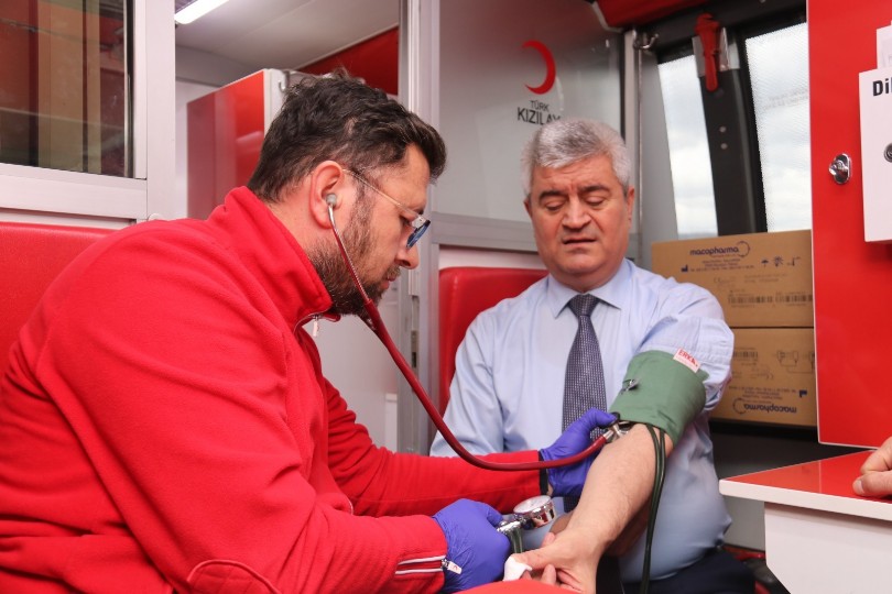 ‘Birbirimize Kandan-Candan Bağlıyız’ sloganıyla ilk kan bağışını Karabük İl Emniyet Müdürü Mehmet Ali Hasan Köse ve beraberindeki heyet gerçekleştirdi.