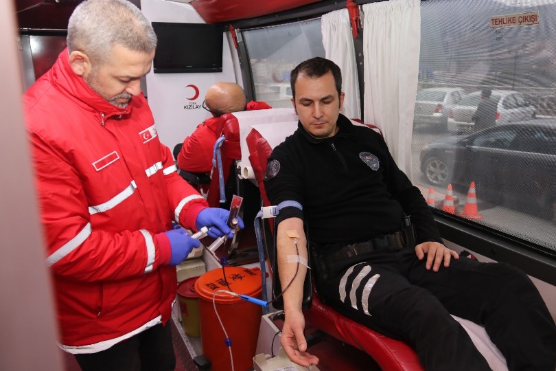 Türk Kızılay Karabük Şubesi Kan Aracı Karabük İl Emniyet Müdürlüğü Hizmet Binası’na gelerek gönüllü emniyet personellerinden kan bağışı aldı.