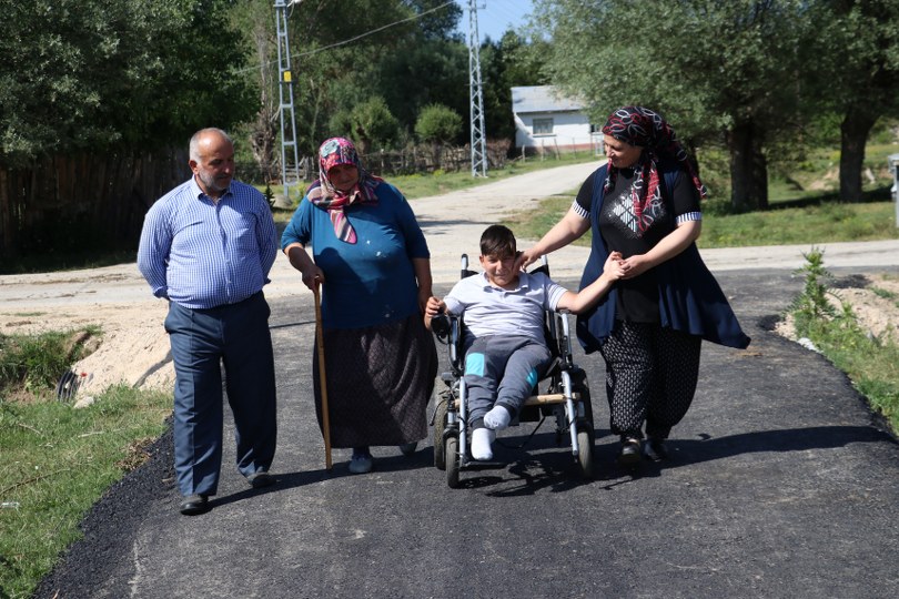 Yolun asfaltlanmasıyla akülü aracını rahatlıkla kullanan Güneyli, köyünde mutlu günler geçiriyor.