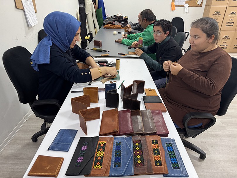 Merkezde yürütülen “Engel Yok ÇABA Var Projesi” kapsamında karton bardak atölyesinin yanı sıra kağıt ipten çanta örme, seramik, deri cüzdan işleme, mobilya ve marmelat atölyeleri oluşturuldu.