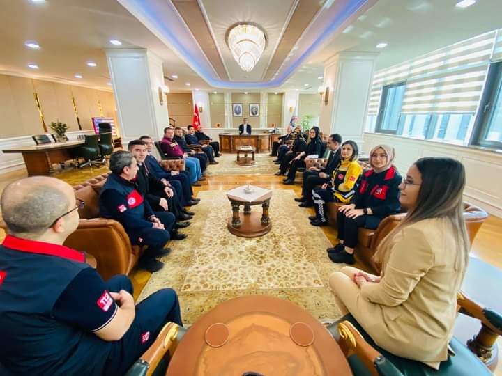 Karabük Valisi Mustafa Yavuz 112 Günü dolayısıyla ziyarette bulunan 112 Acil Çağrı Merkezi Müdürü Emre Erakçaoğlu ve beraberinde yer alan Çağrı Merkezi personelinin gününü kutladı.