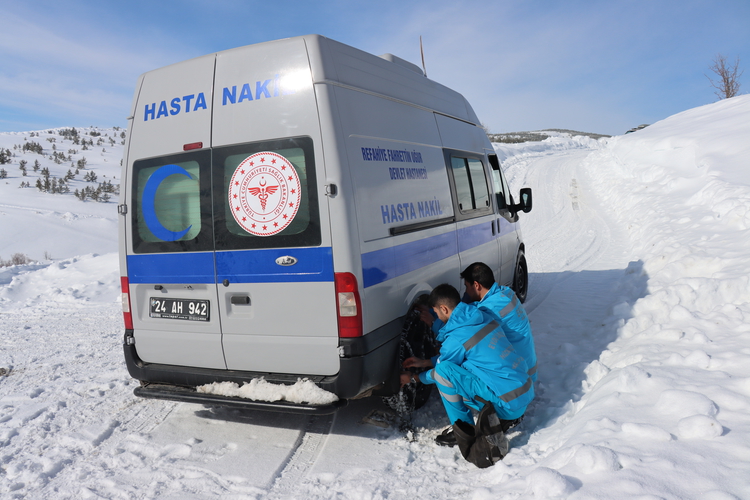 Kışın çetin geçtiği Refahiye ilçesine yaklaşık 25 kilometre uzaklıktaki Gümüşakar köyünde yaşayan Şeftalioğlu ailesinin evine karlı yolları aşarak ulaşan sağlık ekipleri, kısmi felçli Sakine Şeftalioğlu’nun (88) muayenesini yapıp tedavisine yönelik kontrolleri gerçekleştirdi.