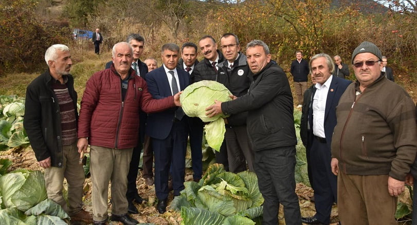 Eskipazar’a bağlı Köyceğiz köyündeki bir lahana tarlasını ziyaret eden Vali Fuat Gürel, çiftçilerden lahananın, ekimi, hasadı ve satışı hakkında bilgi aldı.