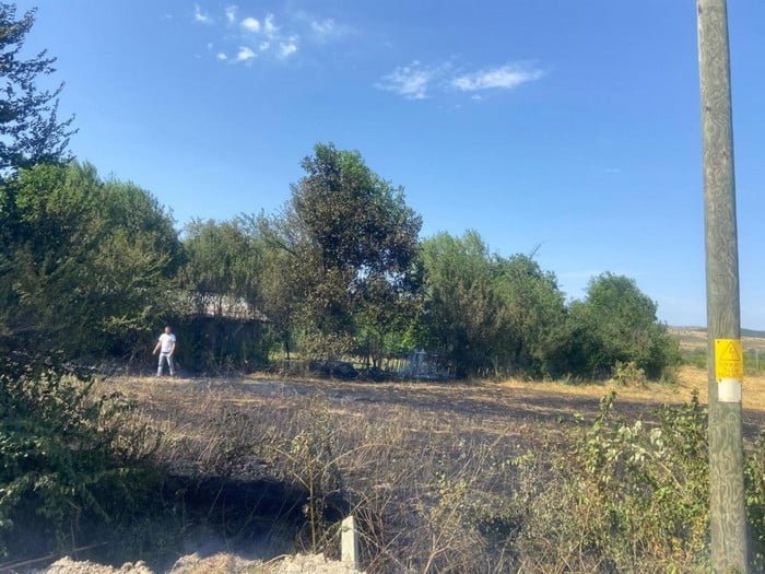 Yangından zarar gören yaklaşık 1 dönüm alanda soğutma çalışması yapıldı.