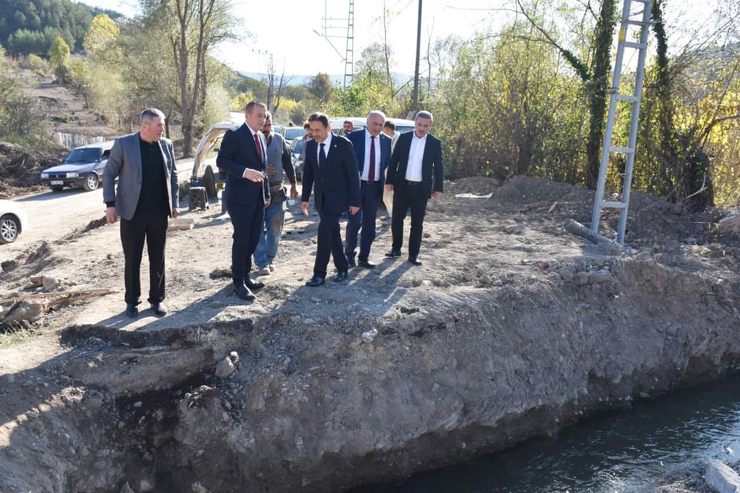 İl Özel İdaresi tarafından serimi yapılan asfalt çalışması ile ilgili Eskipazar İlçe Özel İdare Müdürü Bülent Ceylan ve İlçe Teknik Sorumlusu Mustafa Yeşil’den bilgiler alan heyet ardından yapımı devam eden Köyceğiz Köprüsü’nde incelemelerde bulunarak Genel Sekreterimiz Kelleci’den bilgiler aldı.