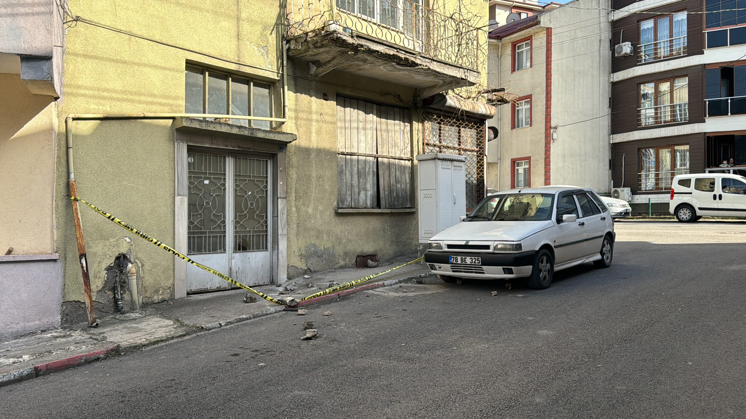 Kayabaşı Mahallesi Ender Sokak’taki boş olan 4 katlı apartmandaki bir dairenin balkonundan kopan parçalar, park halindeki otomobil zarar verdi.