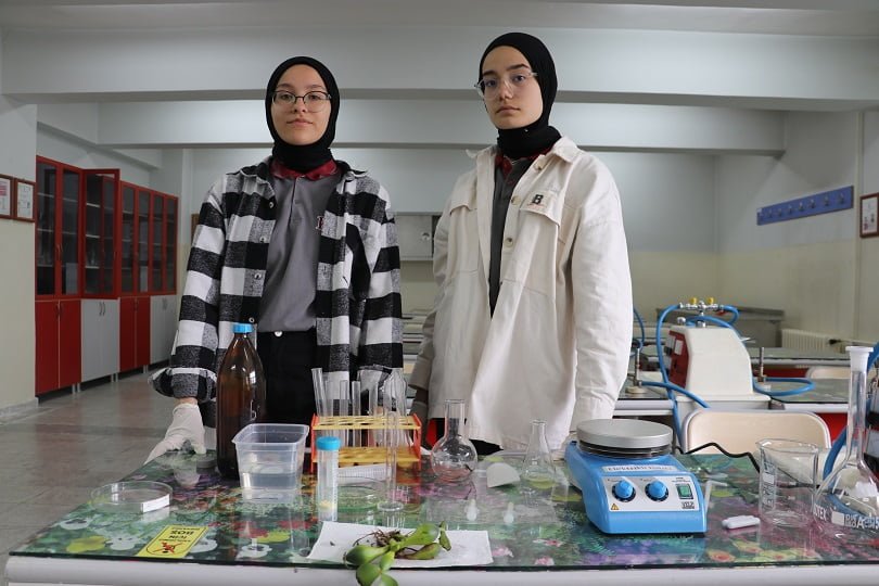 Kastamonu Fen Lisesi 11. sınıf öğrencileri İnci Büşra Yaman ve Ayşenur Kuru, su sümbüllerinin köklerini kullanarak sudaki ağır metallerin doğal yollarla arıtımını sağladı.