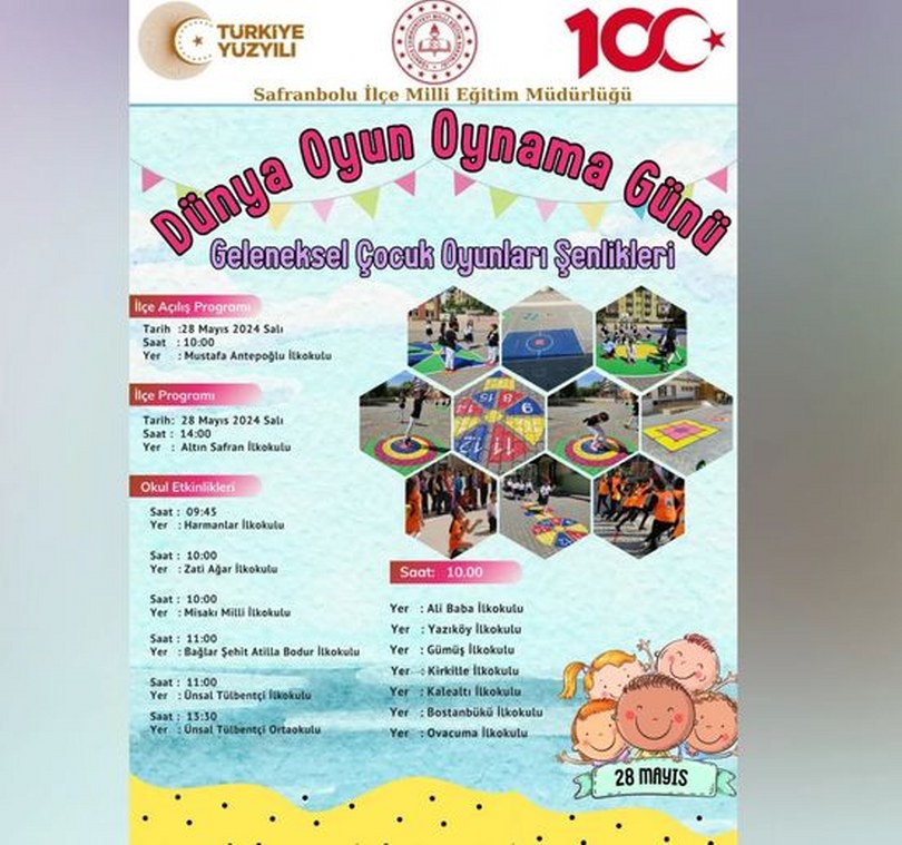 Okul bahçelerinde “Geleneksel Çocuk Oyun Alanları Ve Egzersiz Parkuru” çizimlerinin tamamlandığını belirten Safranbolu İlçe Milli Eğitim Müdürü Said Nuri Odabaşoğlu şu ifadelere yerdi: “Milli Eğitim Bakanlığımızca başlatılan proje ve bu kapsamda hazırlanan “Yüz Yüze 100 Çocuk Oyunu” adlı kılavuz ile öğrencilerimiz okul bahçelerimizde geleneksel oyunlarımızı oynamakta. Projenin amacı öğrencilerimizin ekran başında geçirdiği süreyi azaltmak ve hareketsiz bir yaşam sürmelerinin önüne geçmek. Bu kapsamda “28 Mayıs Dünya Oyun Oynama” gününde okul bahçelerimizde “Geleneksel Çocuk Oyunları Şenlikleri” programı gerçekleştirilecek. Program dahilinde okul bahçelerimizde öğrencilerimiz tarafından geleneksel oyunlarımız oynanacak. Böylelikle öğrencilerimizin bilişsel, fiziksel, sosyal ve duygusal iyi olma durumunu ve sosyal yönleri gelişecek, doğal ortamda ve okulda arkadaşlarıyla uyum içerisinde oynayarak vakitlerini daha iyi değerlendirebilecekler.” dedi.