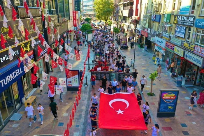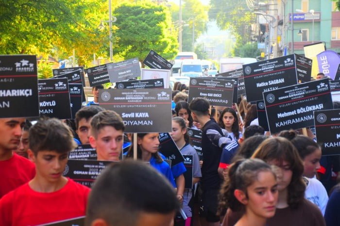 Analig müsabakaları için 19 farklı ilden Karabük’e gelen yaklaşık 350 sporcu İstasyon Caddesinden 6 Şubat’ta meydana gelen Kahramanmaraş merkezli depremlerden etkilenen iller ve depremde hayatını kaybeden 78 Gençlik ve Spor personellerinin isimlerinin yer aldığı dövizlerle Hürriyet Caddesine kadar yürüdü.
