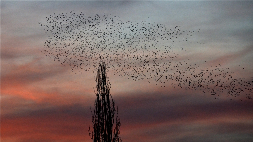 Halk arasında “kuşların dansı” olarak nitelendirilen kuşların uçma anı, ilçe sakinlerince hayranlıkla izlendi.