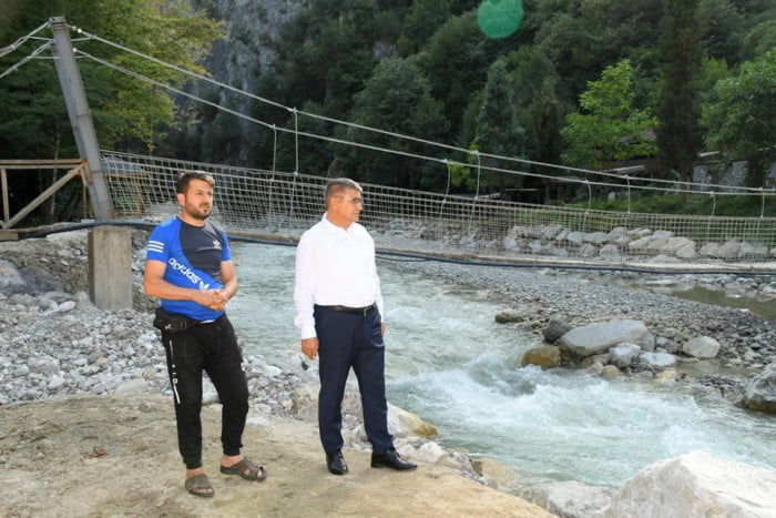 Valilikten yapılan açıklamaya göre, Vali Gürel, yoğun yağışlar nedeniyle ulaşıma kapanan Yenice Yazıköy İncebacaklar Mahallesi yolu ile Şeker Kanyonu’nda incelemelerde bulundu.