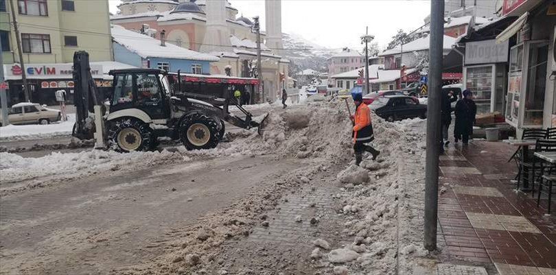 İlçede etkili olan kar yağışının ardından Belediye ekipleri temizleme çalışması başlattı.
