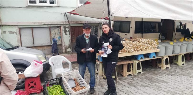 Hanönü İlçe Emniyet Müdürlüğü personeli tarafından halk pazarında esnaf ve vatandaşlara dolandırıcılık konusunda bilgilendirme yapıldı.