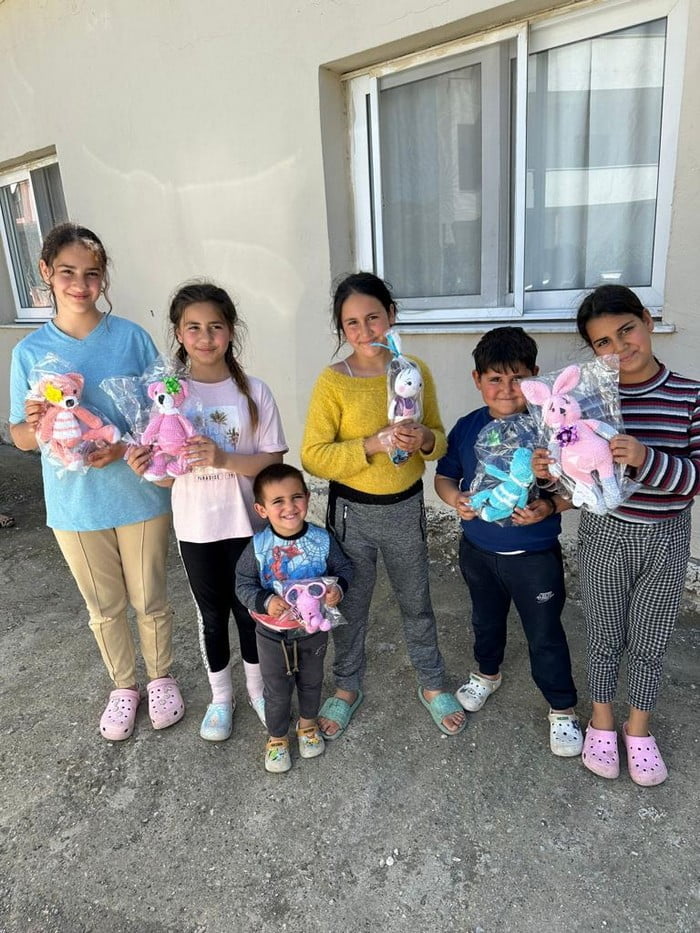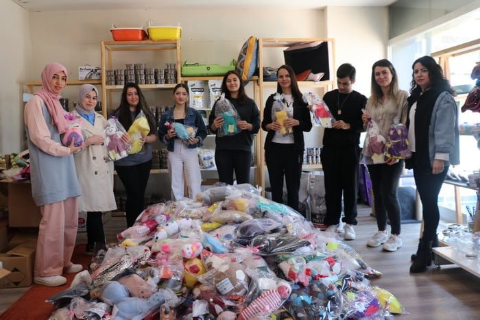 Bin oyuncak ürettiklerini, bunun yanı sıra toka ve topların bulunduğunu ifade eden Arslan, “Bayramlık kıyafetlerimiz var. Kenetlenmiş durumda öğrencilerimiz. Evlerde oyuncakları hazırlarken, anneleri bir yandan banyo lifi ördü. Bizim yapabildiğimiz çok küçük bir şey. Umarım mutlu olurlar. Onların mutlu olması geleceğimizin güzel geçmesi demektir.” diye konuştu.