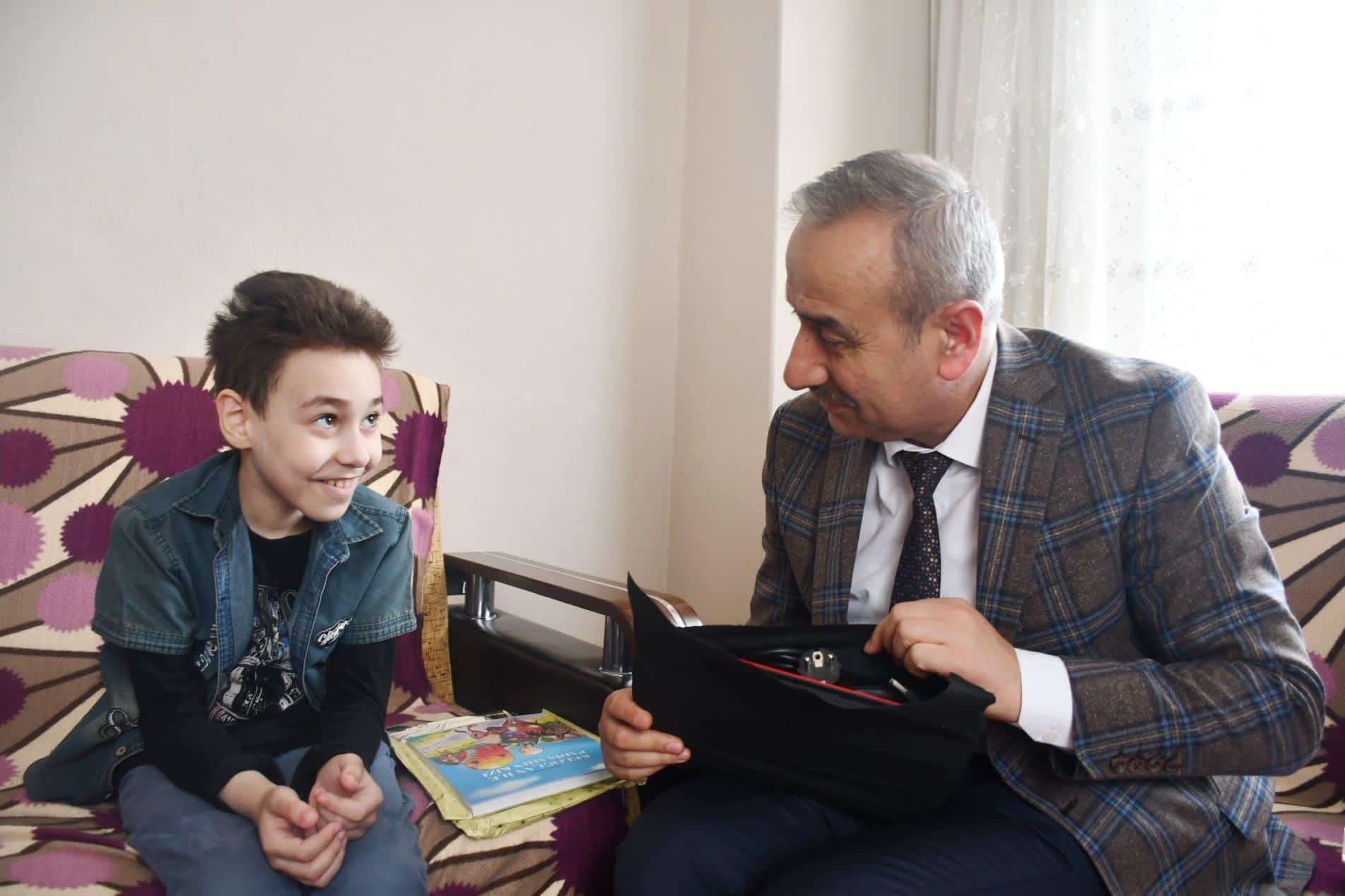Ardından Karabük İl Millî Eğitim Müdürü Nevzat Akbaş evde eğitim gören Ahmet Ali Ekemen ve kardeşi Zeynep Ekemen ile bir süre sohbet ederek isteklerini dinledi.