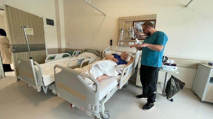 “En sonunda dediler ki, ‘Annenize verdiğimiz antibiyotiği keseceğiz, organlarının bazıları antibiyotik kesildiği için iflas edecek, 2-3 hafta içinde ölecek.’ Ondan sonra sağ olsunlar, Konsolosluğa başvurduk. Ambulans uçak istedik, annemiz buraya getirdik. Şu anda buradayız. Tedavi görüyoruz. Burada çok iyi karşıladılar.”