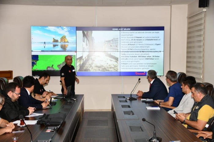 Valilikten yapılan açıklamaya göre, Vali Fuat Gürel başkanlığında 112 Acil Çağrı Merkezi Müdürlüğü GAMER Toplantı Salonu’nda yapılan toplantıda, il genelinde taşkının etkili olduğu bölgelerde yürütülen çalışmalar değerlendirildi.