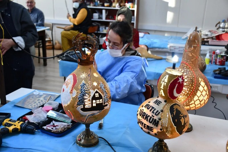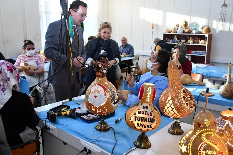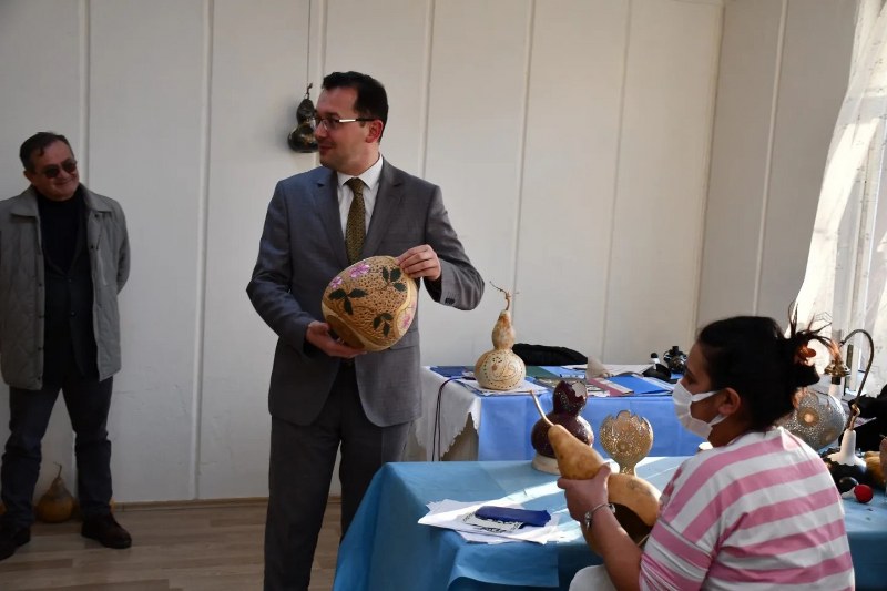 Müdürlükten yapılan açıklamaya göre, Aşağı Tokatlı SAKEM Merkezi’nde devam eden, delme, inceltme, kesme, yakma ve boyama gibi tekniklerin uygulandığı su kabağı işlemeciliği atölyesinde kursiyerlerle sohbet eden Odabaşoğlu, el emeği ile hazırlanan işlenmiş eserleri inceledi.