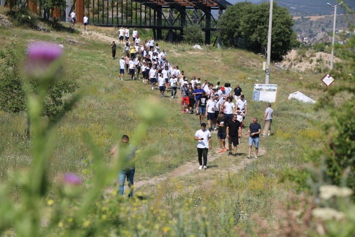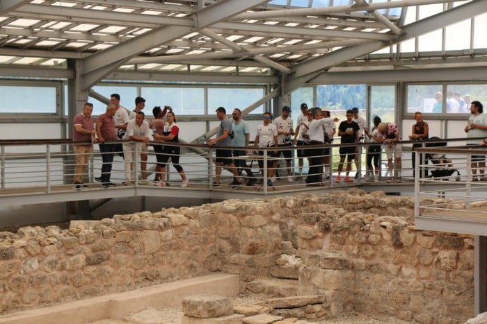 Geç Kalkolitik, Roma ve Erken Bizans dönemlerinde yerleşim yeri olarak kullanılan antik kente gelen sporcular, Kazı Başkanı Doç. Dr. Ersin Çelikbaş’tan bilgi aldı.