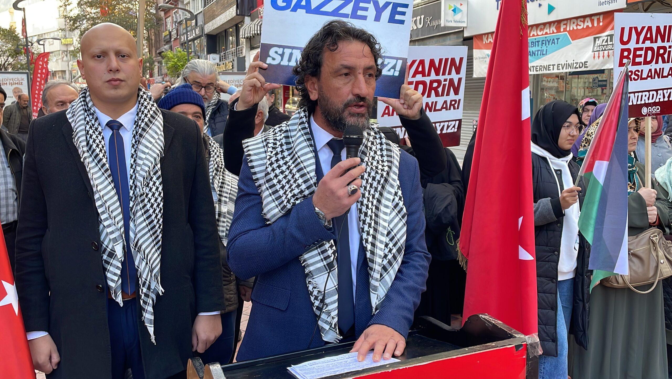Tekoğlu, Gazze’nin İsrail’e karşı mutlak zafer kazanmasını istediklerini sözlerine ekledi .Açıklamanın ardından Filistinliler için dua edildi.