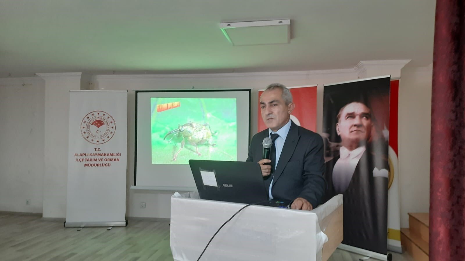 Bulut, “İlçemizde çiftçilik yapan 200 civarında Muhtar ve çiftçimizin katıldığı eğitimde kahverengi kokarca ve filiz güvesi zararlılarıyla ilgili bilgiler verildi. Bilindiği gibi son yıllarda fındıkta en önemli tehlike kahverengi kokarca zararlısı ve filiz güvesidir. Bu zararlılarla hem üreme dönemlerindeki mekanik mücadele hem de zirai mücadele oldukça önemlidir. Bu konuda kadınlarımızın erkeklerden daha çok çalışkan olduklarını bildiğimiz için bu eğitim programını düzenledik. Kadın çiftçilerimize yönelik eğitim programlarımız devam edecektir” dedi.Alaplı Tarım ve Orman İlçe Müdürü İzzet Yılmaz ise Alaplı’nın fındık üretiminde önemli bir yere sahip olduğunu belirtti. Kahverengi Kokarca zararlısının fındık üretimini olumsuz etkilediğini ve bu nedenle mücadelesinin büyük bir önem taşıdığını vurguladı. Biyolojik mücadele yöntemlerinin kullanılmasıyla çiftçilerin kimyasal ilaç kullanımını azaltabileceğini ve doğaya daha dost bir tarım uygulamasının sağlanacağını ifade etti. Eğitim Programına , Zonguldak İl Tarım ve Orman Müdürü Nihat Ağan, Zonguldak İl Tarım ve Orman Müdürlüğü Bitkisel Üretim ve Bitki Sağlığı Şube Müdürü ziraat mühendisi Serkan Bulut, Alaplı İlçe Tarım ve Orman Müdürü İzzet Yılmaz, Ziraat Odası yönetim kurul üyeleri ile muhtarlar ve çiftçiler katıldı.Kahverengi kokarca için seminer düzenlendi