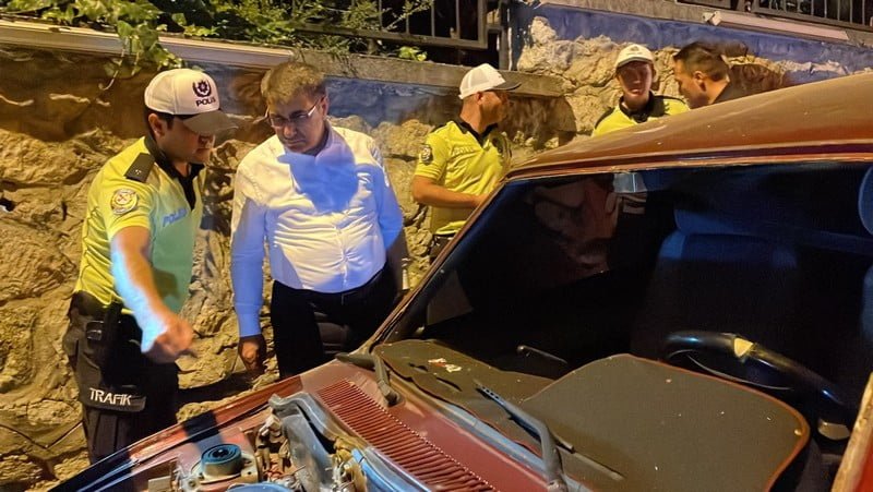 Caddeden geçerken kazayı gören Karabük Valisi Fuat Gürel, makam aracından inerek inceleme yaptı, polislerden bilgi aldı.