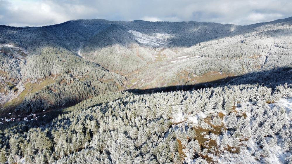 Kastamonu’nun yüksek kesimlerinde kar yağışı ile beyaza bürünen dağlardaki manzaralar mest etti. Ilgaz Dağı’nın eteğinde bulunan İhsangazi ilçesinde yüksek kesimlerinde, kar yağışının ardından kartpostallık görüntüler ortaya çıktı. Görenleri büyüleyen Ilgaz Dağı’nın etekleri dron ile havadan görüntülendi.