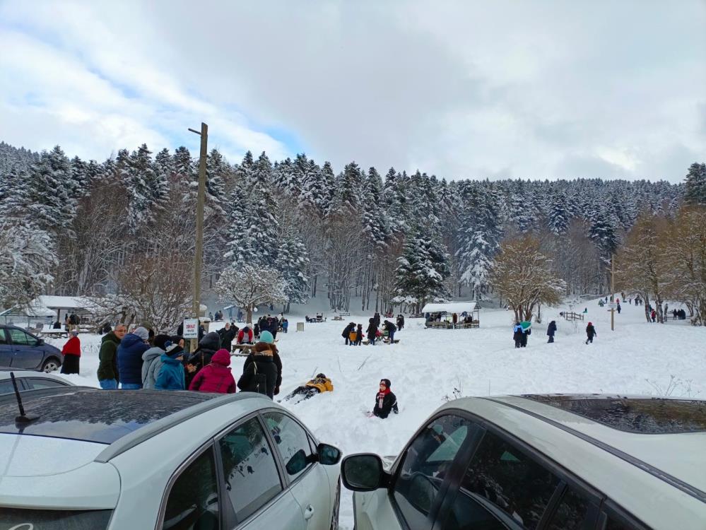 Bolu’da 2 gündür aralıklarla etkili olan kar yağışı gece saatlerinde yoğun şekilde etkisini gösterdi. Yoğun kar yağışının etkili olduğu Abant Gölü Milli Parkı’nda kar kalınlığı 50 santimetreye ulaştı. Dört yanı ormanlarla çevrili olan milli parkta kartpostallık görüntüler ortaya çıktı. Kar yağdığını duyan tatilciler ise Abant’a akın etti. Göl etrafında turlayan ve bol bol fotoğraf çekinen vatandaşlar, keyifli vakit geçirdi. Öte yandan Abant Gölü Milli Parkı’nın girişinde uzun araç kuyrukları oluştu.