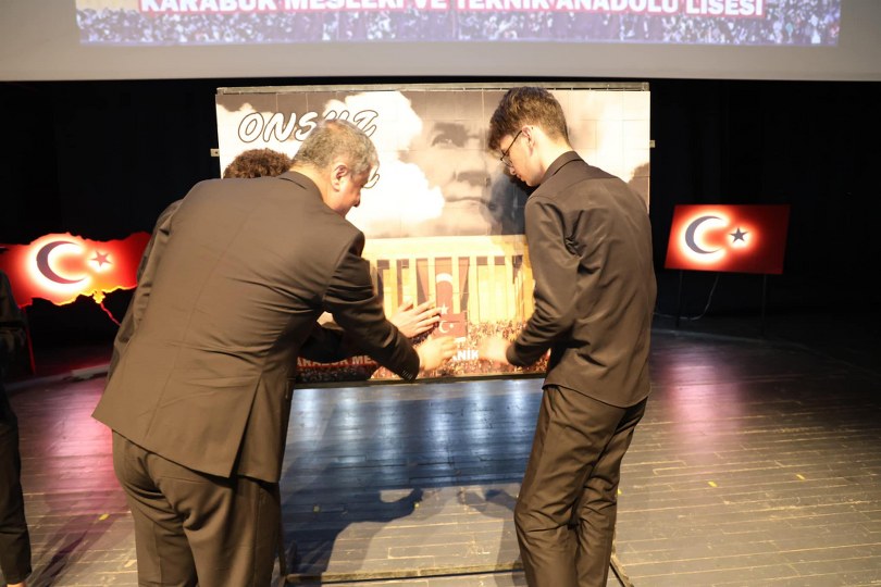 Program, Karabük Valisi Mustafa Yavuz’un, sahnede oluşturulan Atatürk ve Anıtkabir’i simgeleyen puzzle’ın son parçasını yerleştirmesiyle sona erdi.