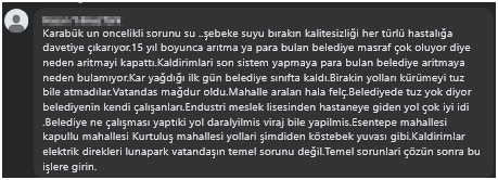 Sosyal medya üzerinden belediyenin hizmet önceliklerini sorgulayan bir vatandaş, Karabük’ün öncelikli sorununun su olduğunu belirterek şu ifadeleri kullandı: