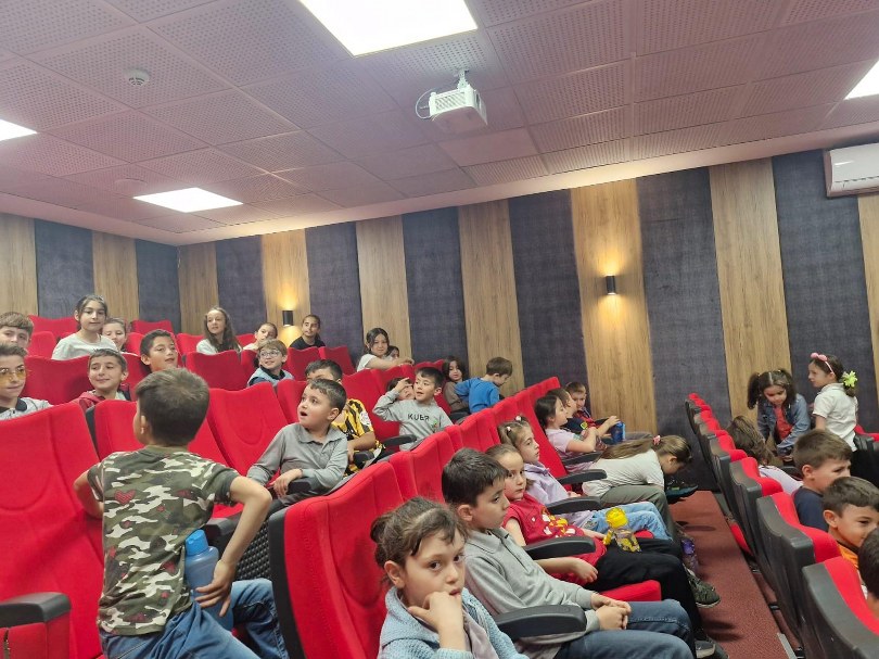 Öğretmenlerin ve öğrencilerin keyifli dakikalar geçirdiği sinema gösteriminden geriye renkli görüntüler kaldı.