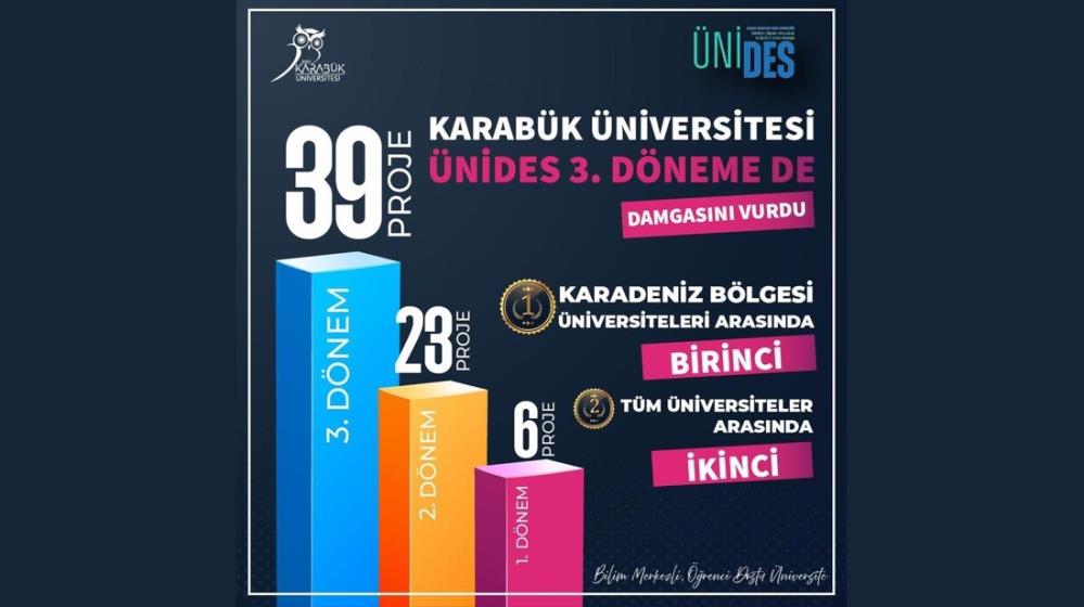 Karabük Üniversitesi bünyesinde faaliyet gösteren öğrenci topluluklarının 29 yerel ve 10 ulusal olmak üzere toplamda 39 projesi ÜNİDES kapsamında desteklenmeye hak kazandı. Bu sonuçla Karabük Üniversitesi, ÜNİDES’te en fazla projesi kabul edilen üniversiteler arasında üst üste üçüncü kez Türkiye 2.’si oldu, ayrıca Karadeniz Bölgesi’nde 1. sıraya yükseldi.