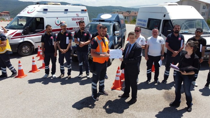 100. Yıl Mahallesi Kültür Merkezi yanındaki pistte gerçekleştirilen eğitimin sonunda İl Sağlık Müdürü Ahmet Sarı ve İl Sağlık Hizmetleri Başkan Yardımcısı Turhan Sarıcı tarafından personele “katılım belgeleri”, eğitmenlere de “teşekkür belgeleri” verildi.