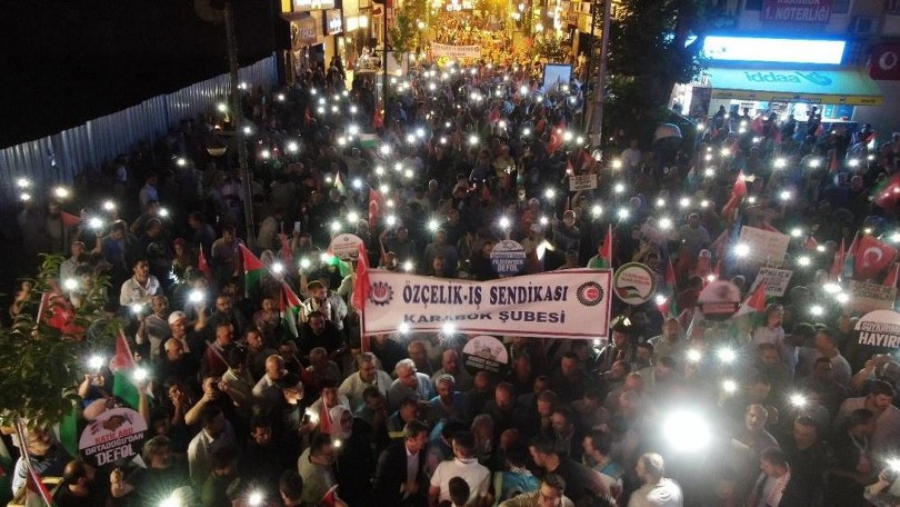 Karabük Filistin’e Destek Platformu tarafından ‘Karabük Gazze İçin Ayakta’ sloganıyla Hamas Siyasi Büro Başkanı İsmail Haniye ve Filistinli şehitler için yürüyüş programı düzenledi. Yenişehir Camisi önünde toplanan temsilcileri, ellerinde pankart ve dövizlerle Kemal Güneş Caddesi’ne kadar yürüdü.