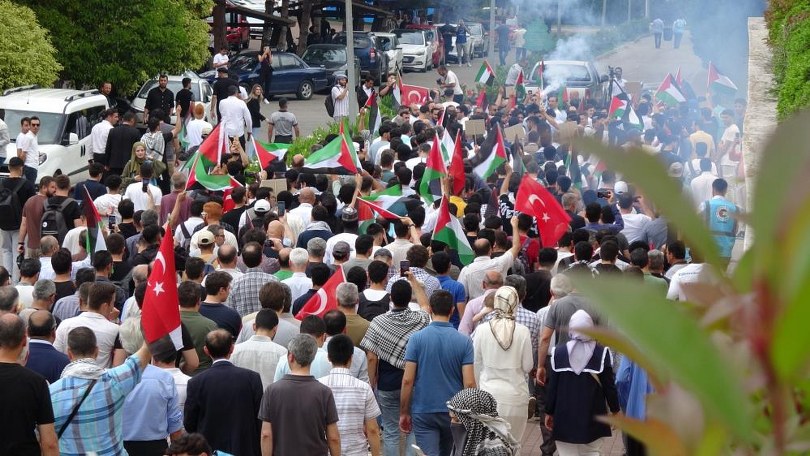 Katılımcılar ellerinde “Gazze’de Çocuklar Katlediliyor”, “Ortadoğu’da İsrail Diye Bir Devlete Yer Yok” ve “Katil İsrail” gibi çok sayıda yazılı pankartlarla Teknoloji Fakültesi önüne kadar yürüdü.