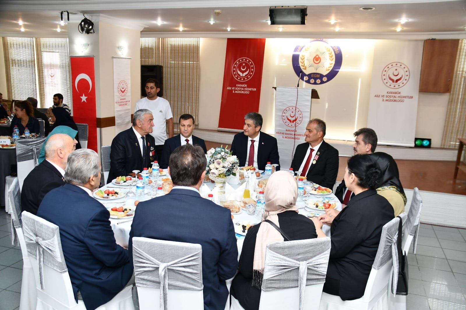 Karabük Polis Evinde düzenlenen etkinliğe, Vali Mustafa Yavuz, Cumhuriyet Başsavcısı Koray Kesgin, Karabük Belediye Başkan Yardımcısı Seher Berker, İl Emniyet Müdürü Mehmet Ali Hasan Köse, İl Jandarma Komutanı İsmail Gökcek, Safranbolu Jandarma Komando Eğitim Merkez Komutanı Yusuf Küçükbaşol, İl Özel İdaresi Genel Sekreteri Şerafettin Kelleci, kurum müdürleri, Muharip Gaziler Derneği Karabük Şube Başkanı Sebahattin Çorbacı, Türkiye Harp Malulü Şehit Dul ve Yetimleri Derneği Karabük Şube Başkanı Nihat Kılıç, Şehit Aileleri Sosyal Yardımlaşma ve Dayanışma Derneği Başkanı Hilmi Öksüzoğlu, gazilerimiz, aileleri ve şehitlerimizin aileleri katıldı.