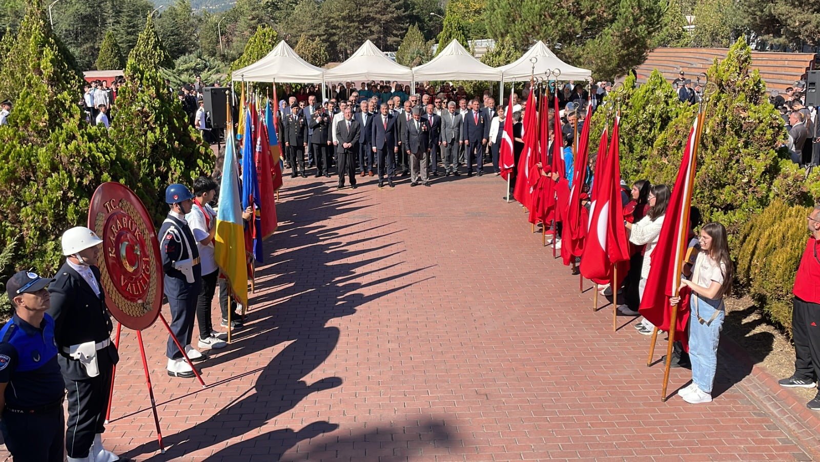 Saygı duruşunda bulunulmasının ardından törende Karabük Belediyesi bandosu eşliğinde İstiklal Marşı okundu.