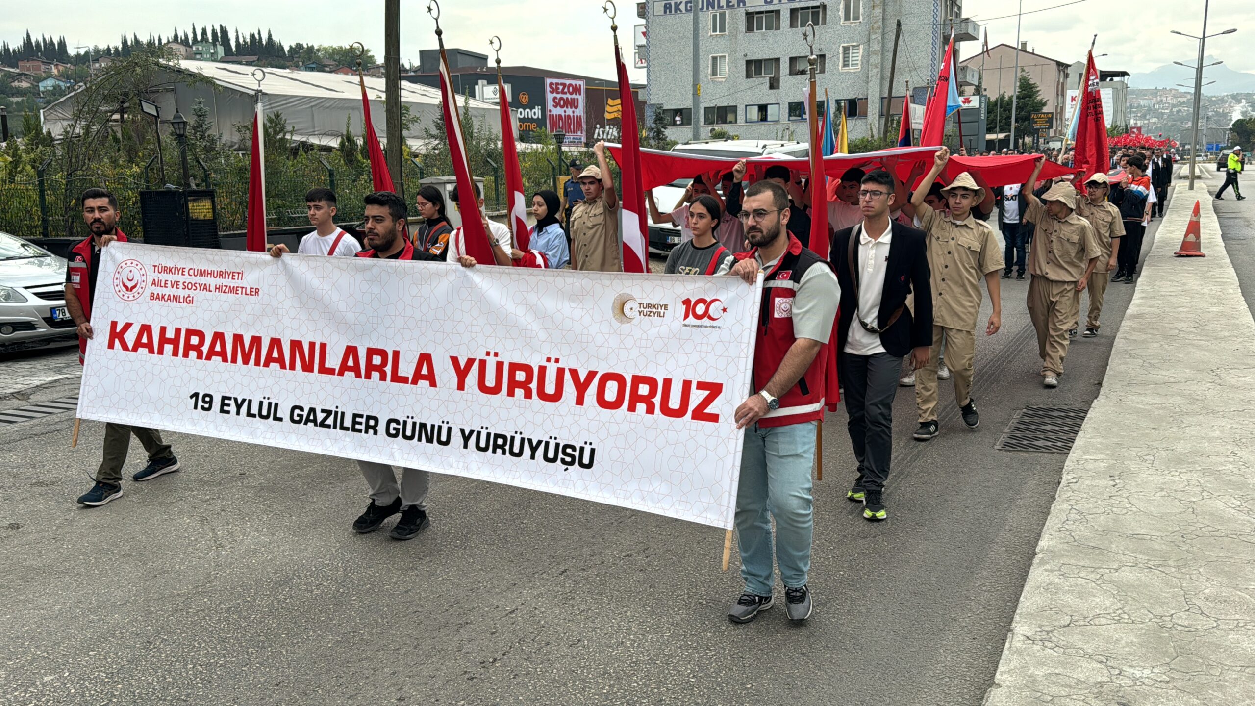Saygı duruşunda bulunulmasının ardından törende Karabük Belediyesi bandosu eşliğinde İstiklal Marşı okundu.