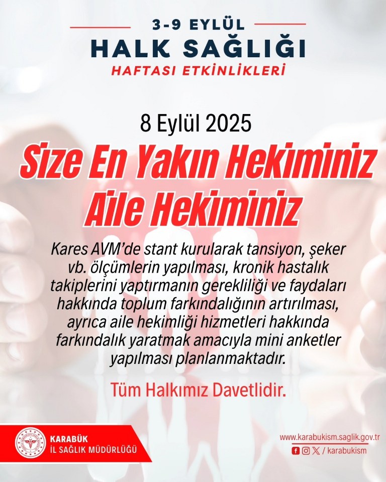Stand alanında mini anketler gerçekleştirilecek ve vatandaşlara aile hekimliği hizmetleri hakkında farkındalık kazandırılacak. İl Sağlık Müdürlüğü, tüm halkı etkinliğe katılmaya davet etti.