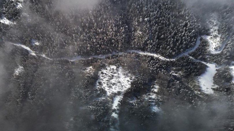 Beyaz örtüyle kaplanan bölgede hem ateş yakarak ısınan hem de karın keyfini süren vatandaşlar, doğanın sunduğu eşsiz manzaraları fotoğrafladı. Yoğun sisin eşlik ettiği karla kaplı alanlar, dron ile havadan görüntülenerek kartpostallık kareler oluşturdu.