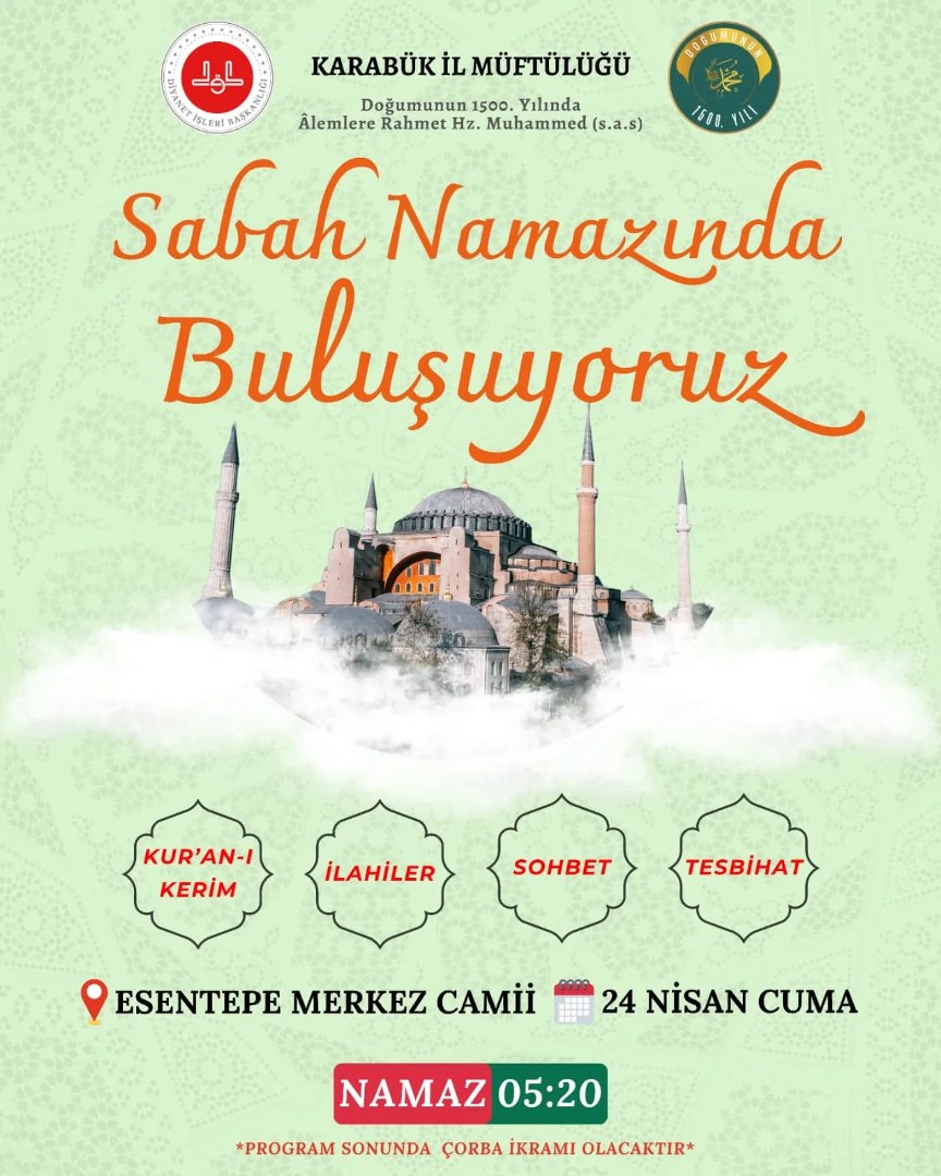 Karabük İl Müftülüğü, bu özel ve anlamlı buluşmaya tüm Karabüklü vatandaşları davet ederek; Efendimizin doğum yıl dönümü sevincini ve sabah namazının bereketini paylaşmaya çağırdı.