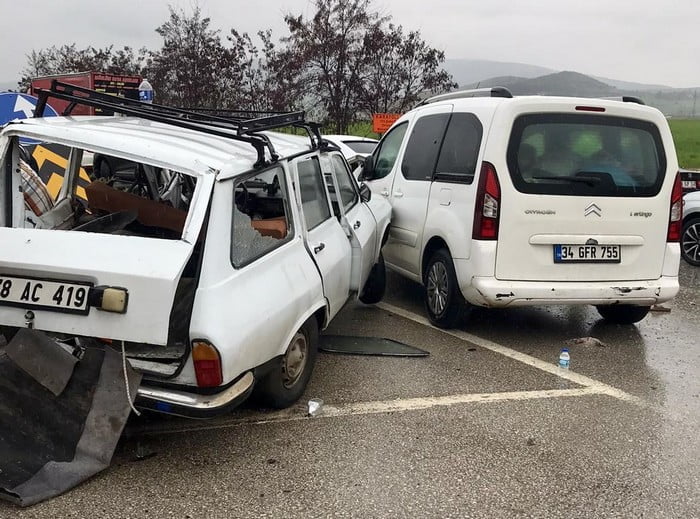 Kazada, sürücü İ.Y. ve yanındaki Z.E. (8), B.E, M.E. (13), N.O. ve M.E. yaralandı.