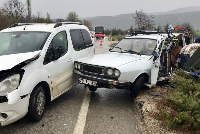 Karabük’ten Zonguldak yönüne giden K.T. (41) idaresindeki 57 DP 686 plakalı otomobil, karşı yönden gelen B.K. (34) yönetimindeki 67 ZD 367 plakalı otomobil ile Pirinçlik mevkisinde çarpıştı.