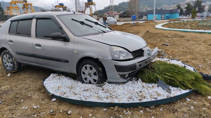 Refüje çıkarak durabilen otomobilin sürücüsü ile yanındaki N.Ç. yaralandı.