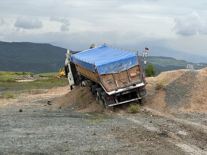 Karabük’ün Safranbolu ilçesinde yol kenarındaki toprak yığınlarına çarpan tırın sürücüsü hastaneye kaldırıldı.