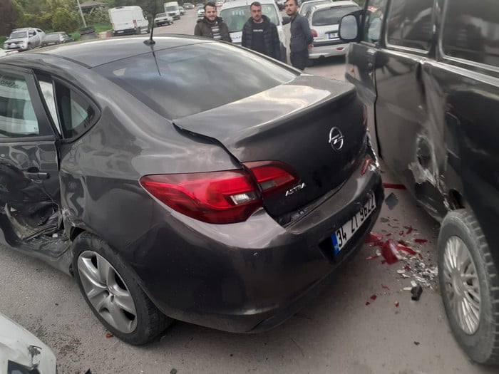 Çarpışmanın etkisiyle savrulan 34 ZT 9622 plakalı otomobil, Orhan Bey Caddesi’nde park halindeki 78 AK 395 plakalı panelvana çarptı.