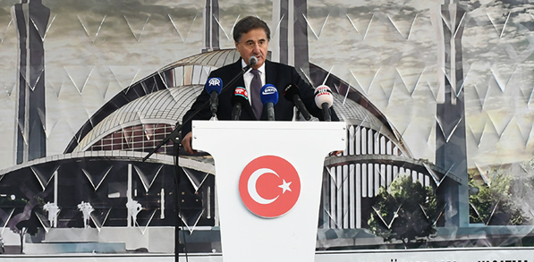 Programda konuşma yapan Merkez Camii Mimarı Salim Ak ise camii ile ilgili bilgiler paylaşarak Merkez Camii’nin bugüne kadar emsali olmayan tarzda yeni bir konsept düşüncesiyle projelendirildiğini söyledi.