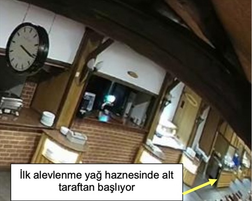 Raporda, yağ haznesinde parlamanın başladığı, burada başlayan ateşin saat 03.24’te yakınında bulunan çöp bidonuna sıçradığı, ateşin buraya bulaşmasıyla yangın büyümeye başladığı belirtilerek, çöp bidonundaki ateşin ise yakınında bulunan LPG fleksi hortumunu erittiği ve saat 03.26’da buradan çıkan gazın alevlenmesiyle yangının kontrol edilemez büyüklüğe ulaştığı anlatıldı.